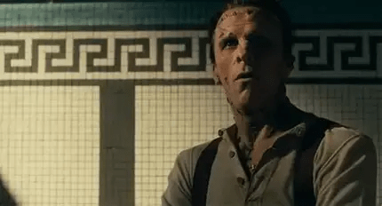 Jessie Buckley’s performance is worth the price of admission alone. She’s really playing three characters in one; Ida, “The Bride” and author Mary Shelley herself, whose essence possesses Ida/”The Bride” at frequent intervals. As if she has Tourette’s but with an English accent and instead of spitting out unfortunately timed slurs, she disgorges her vocabulary. Buckley’s “The Bride” is like an animal free from its cage. Unfettered, unchained, absolutely no holds barred. Her orange dress reminded me of a prison jumpsuit. Ida is certainly a prisoner of the misogyny of the era yet would such an unbridled force of nature wait to be sprung from her cell or would she wrench the steel bars off herself?